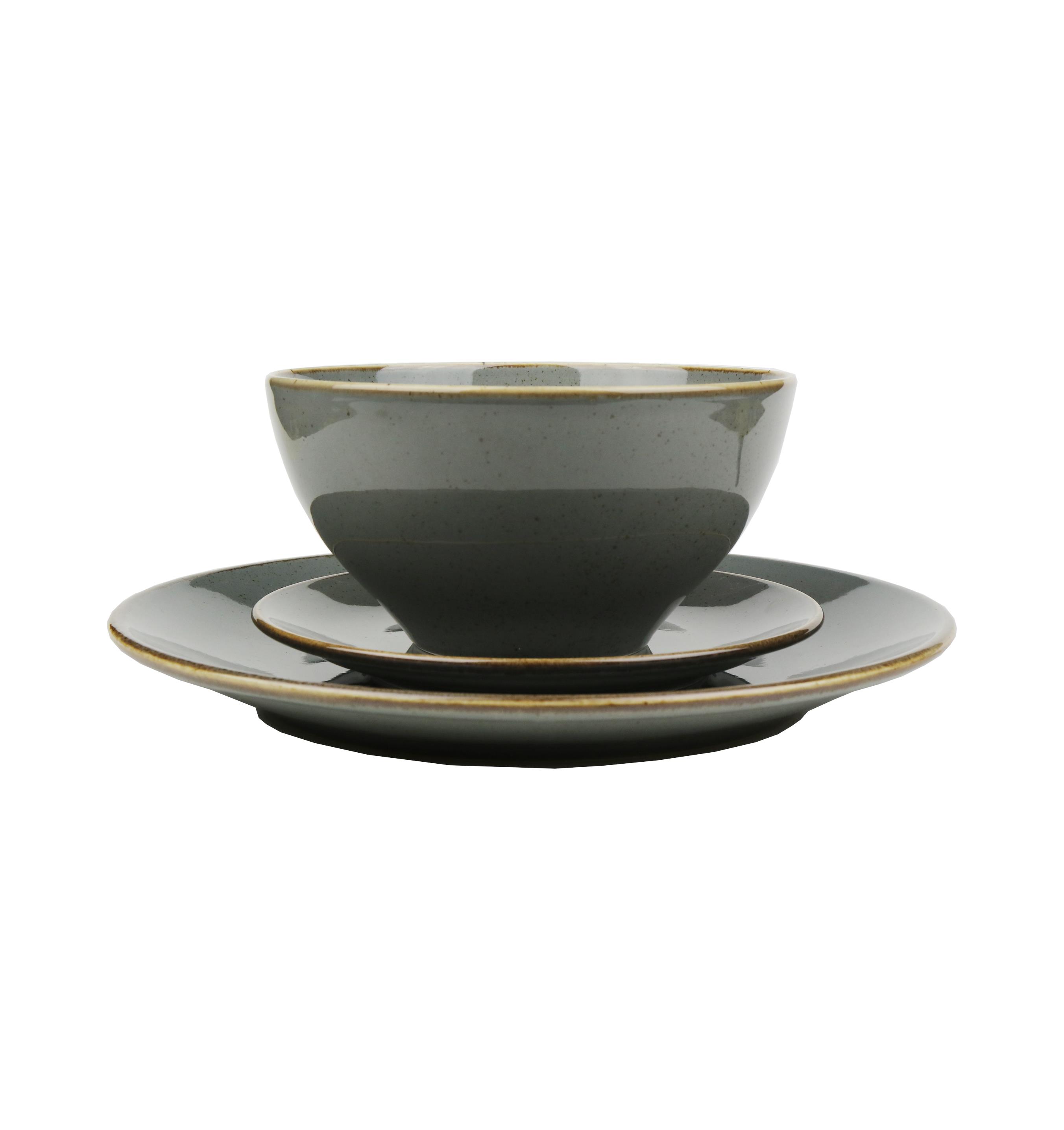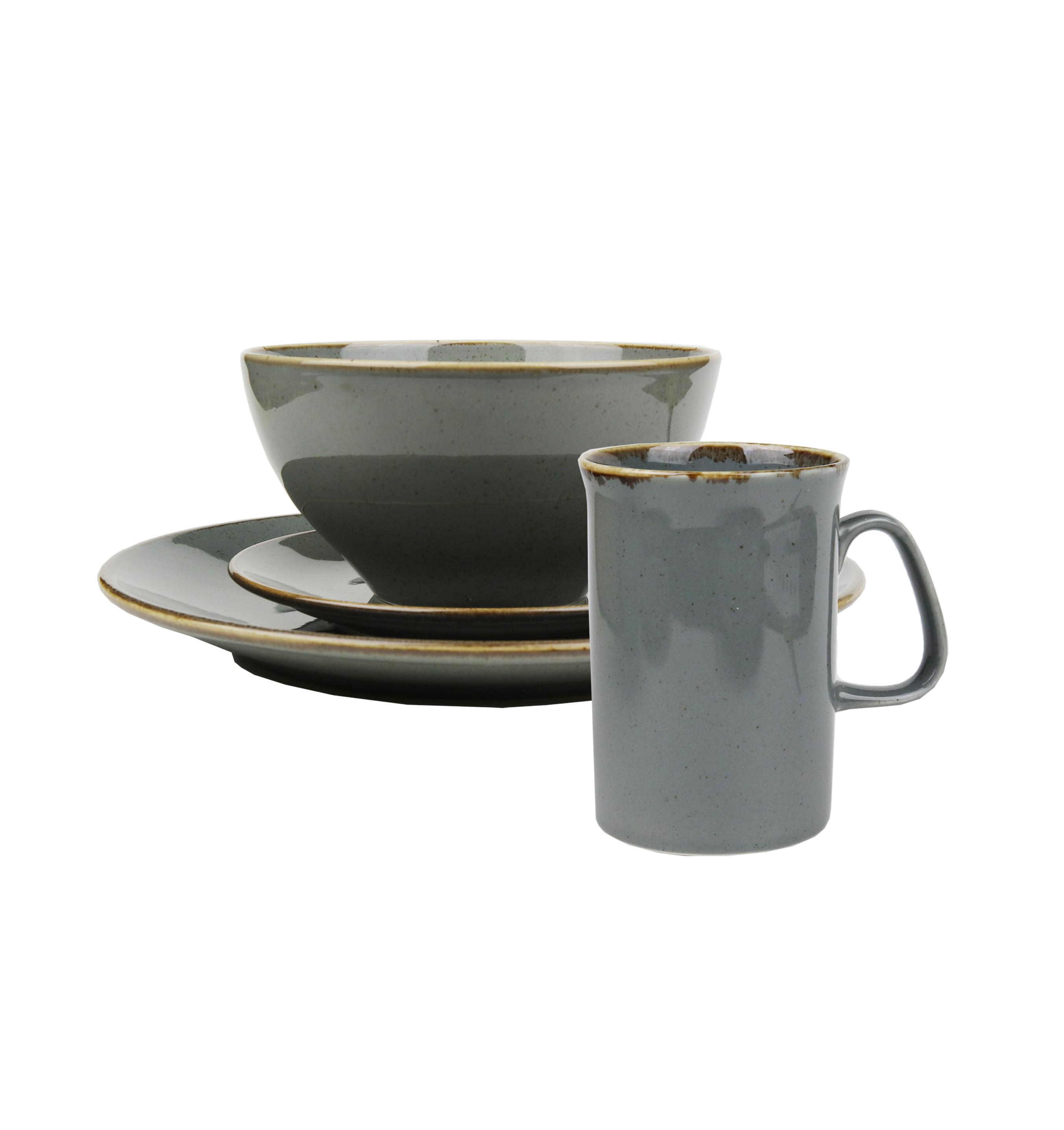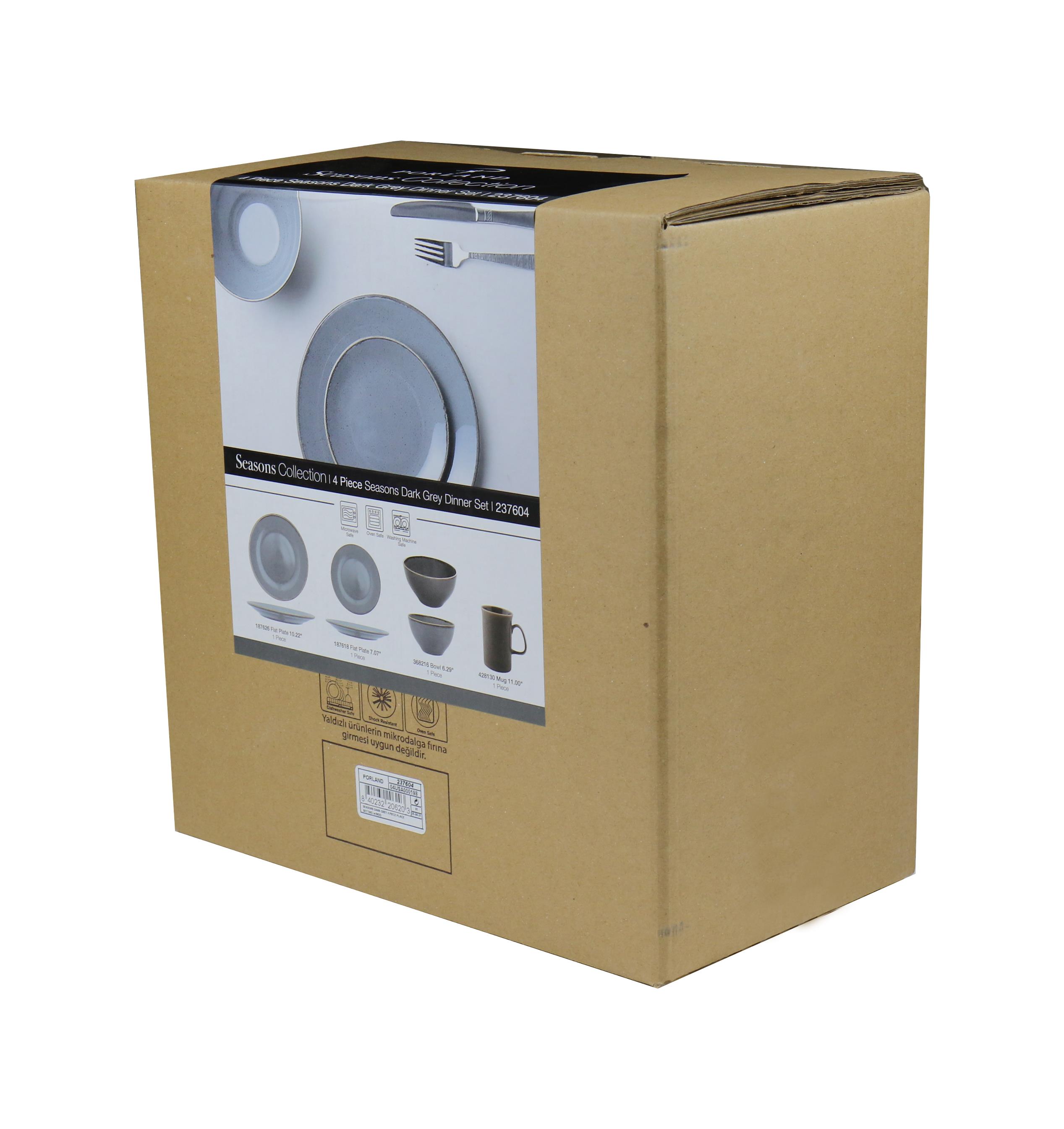 Набор из 4 предметов (тарелка d 18 см, салатник d 16 см, кружка 325 мл, тарелка d 26 см), фарфор, цвет темно-серый, Seasons
