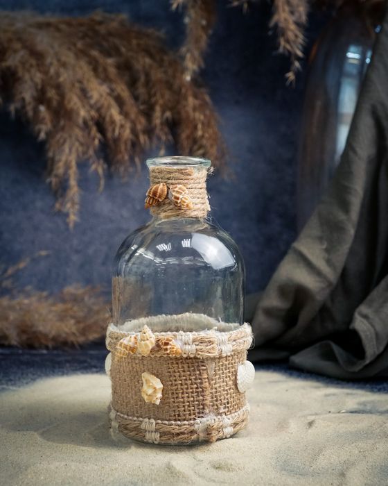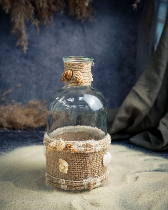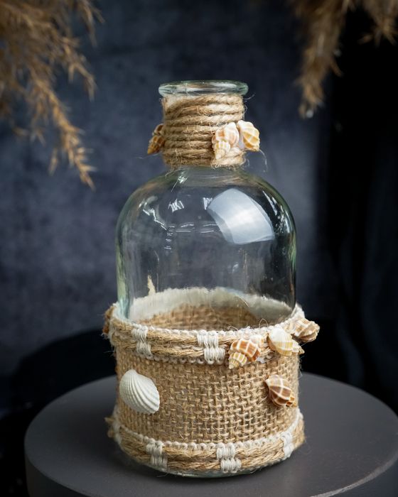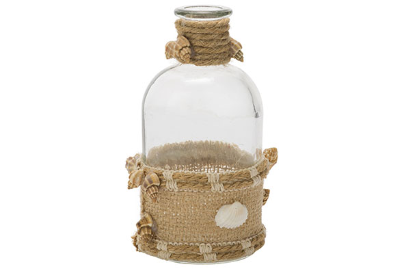 Ваза-бутылка с ракушками 8X8XH13CM, стекло